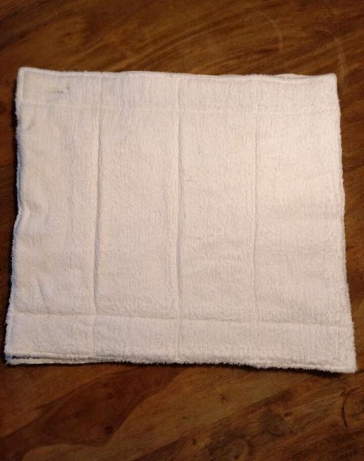 Sehr gepflegter 4er-Satz Bandagierunterlagen der Marke Lacrox in Weiß mit floralem Muster in Blau/Navy. Sie sind alle 4 gleich groß: 38 cm hoch, 43 cm breit. Die Innenseiten haben saugfähiges Frottee.