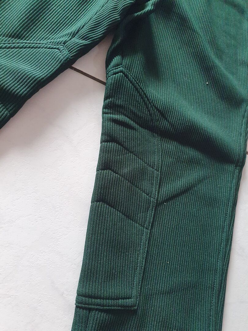Reithosen aus gerippter Kunstfaser mit Stoffkniebesatz.