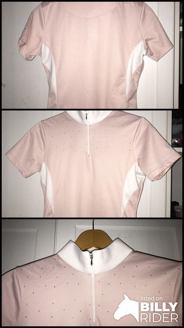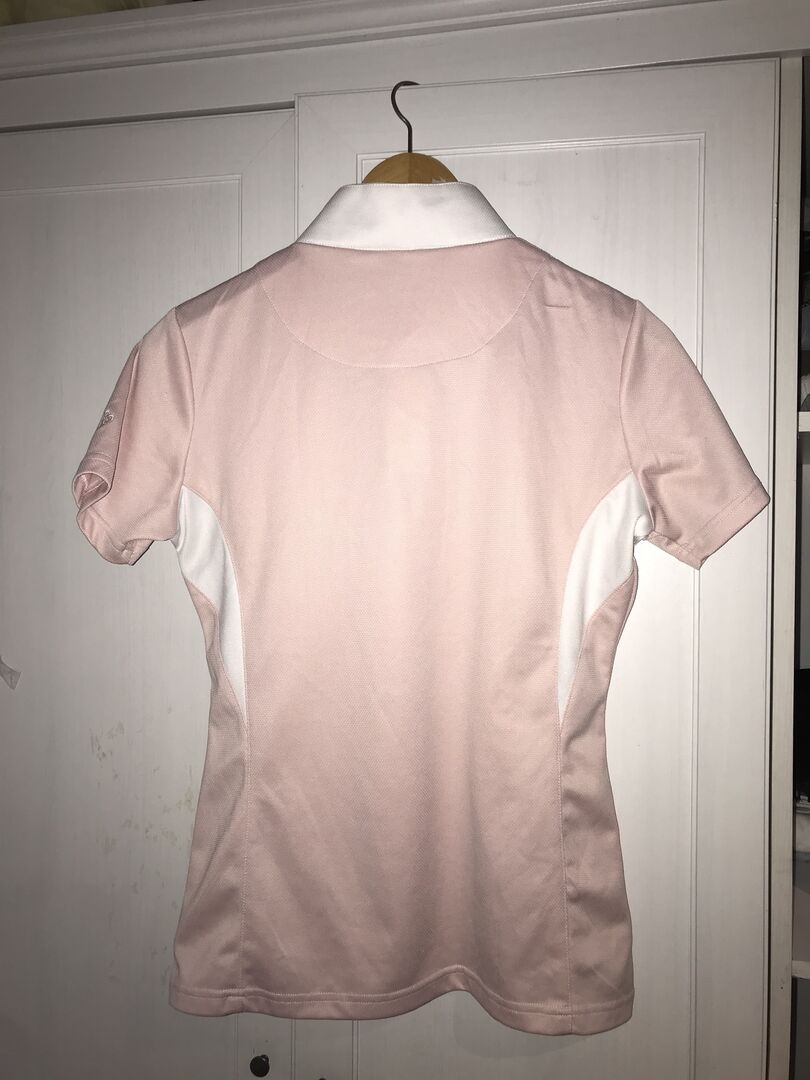 Ich verkaufe dieses schöne rosafarbene Turniershirt von 4RIDERS. Das Shirt hat auf der Brust kleine Glitzersteine und ist in der Größe 38. Ich konnte es Verletzungsbedingt nur 2 mal tragen und nun passt es mir leider nicht mehr und zum rumliegen ist es zu schade. Versand ist möglich. Bei Fragen gerne anschreiben!
