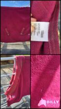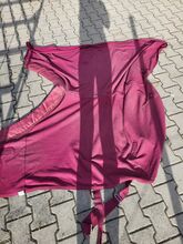 Die Decke ist bordeaux - rot und hat einen glitzernden "Waldhausen" Schriftzug. Ebenfalls hat sie einen Frontverschluss aus Metall und Klett und eine Kreuzbegurtung am Bauch. Ein schöner dicker Kragen ist auch vorhanden und lässt sie elegant aussehen.