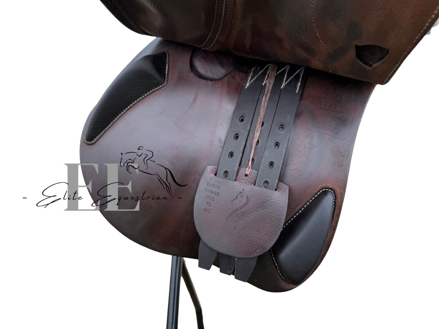 Antarès Evolution-D2 Springsattel 17.5" - Zum Verkauf steht ein schöner Antarès Evolution-D2, ein hochwertiger Premium-Springsattel. Die Besonderheit dieses Sattels ist die D2-Technologie, die dank ihrer speziellen Konstruktion den Schulterbereich des Pferdes entlastet und so mehr Bewegungsfreiheit beim Springen ermöglicht. Er ist besonders für Pferde mit ausgeprägter oder empfindlicher Schulterpartie geeignet. Der Sattel verfügt über anatomisch geformte Knie- und Wadenpauschen, die dem Reiter Sicherheit geben, ohne die Bewegungsfreiheit einzuschränken, und ist aus hochwertigem französischem Kalbsleder gefertigt, das sich weich anfühlt, aber extrem strapazierfähig ist. Dieser Sattel ist ideal für Springreiter, die nach einer technisch fortschrittlichen Lösung suchen, die sowohl bequem als auch elegant ist.