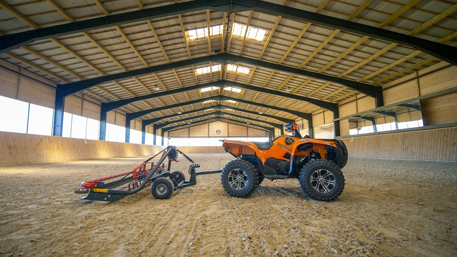 Der R1 Arenagrader ist ein hervorragendes Einsteigergerät, das auch für kleinere Traktoren geeignet ist. Mit unserem Dreipunktkupplungsadapter (erhältlich in unserem Online-Shop) lässt er sich gegen Aufpreis leicht in ein Anhängegerät für ATVs/Quads oder andere Fahrzeuge mit Kugelkopfkupplung umbauen.