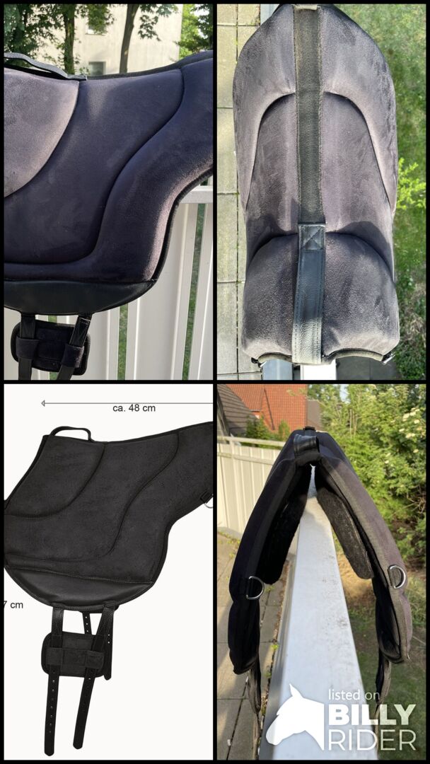 Verkaufe mein kaum genutztes und gut erhaltenes Reitpad von A&M Reitsport. (Baumloser Sattel) Es hat abnehmbare Klettkissen. Das Pad passt definitiv auf Pony/Pferd Größe 1,36 m, 1,50 m und 1,74 m. Also eigentlich für jede Größe.