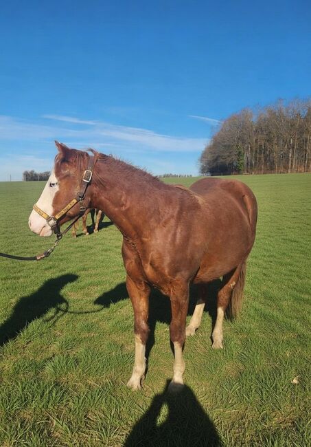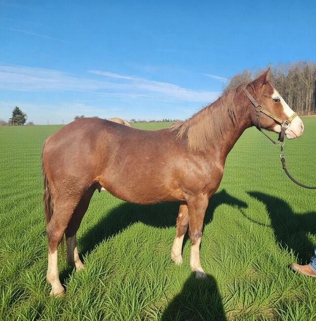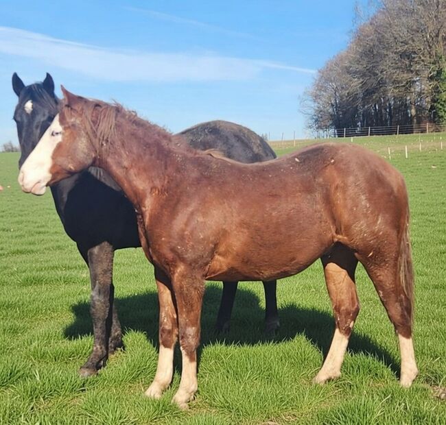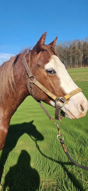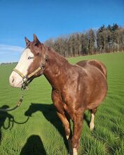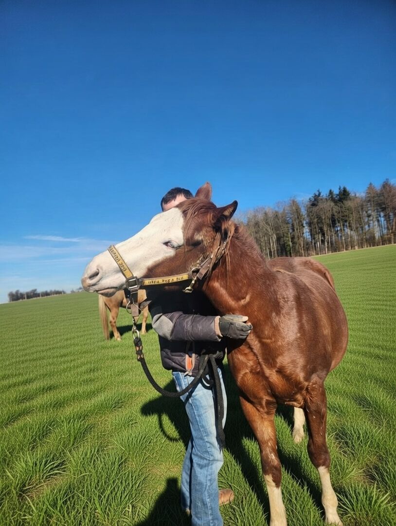 Gunners Fireball ist ein bildhübscher Quarter-/Paint-Hengst, geboren am 20.06.2024, mit einem geschätzten Endmaß von ca. 150 cm. Er hat die auffällige Farbe Sorrel / Sorrel Overo und besticht durch ein blaues und ein braunes Auge. Er ist doppelt registriert bei der American Quarter Horse Association (AQHA) und der American Paint Horse Association (APHA) und besitzt entsprechende Papiere. Gunners Fireball ist sehr korrekt und kompakt gebaut, mit vielversprechenden Proportionen und hervorragenden Bewegungen. Er ist gesund, 6-Panel n/n und wächst artgerecht in einer Herde mit viel Bewegung und Sozialkontakt auf. Dabei darf er unter besten Bedingungen in Ruhe groß werden. Charakterlich überzeugt er durch seine liebenswerte, menschenbezogene und aufgeschlossene Art. Er zeigt sich interessiert, lernwillig, unkompliziert und sehr kooperativ im Umgang. Das Handling ist bereits jetzt angenehm und einfach. Er kennt das Fohlen-ABC und ist halfterführig. Dank seiner Top-Reining-Abstammung bietet er beste Voraussetzungen für eine spätere Karriere im Reining Showbereich oder als anspruchsvolles Freizeitpferd. Sein Vater ist der erfolgreich geshowte Masked Gunman (LTE: über 40000 EUR), die Mutter ist eine Jac O Rima Tochter, ebenfalls erfolgreich geshowt). Einbezahlt bei der NRHA Germany. Der Hengst ist ein vielversprechendes Nachwuchspferd mit vielseitigen Einsatzmöglichkeiten und großem sportlichem Potenzial. Futurity Prospect. Gunners Fireball wird ausschließlich wegen eines Umzugs abgegeben.
