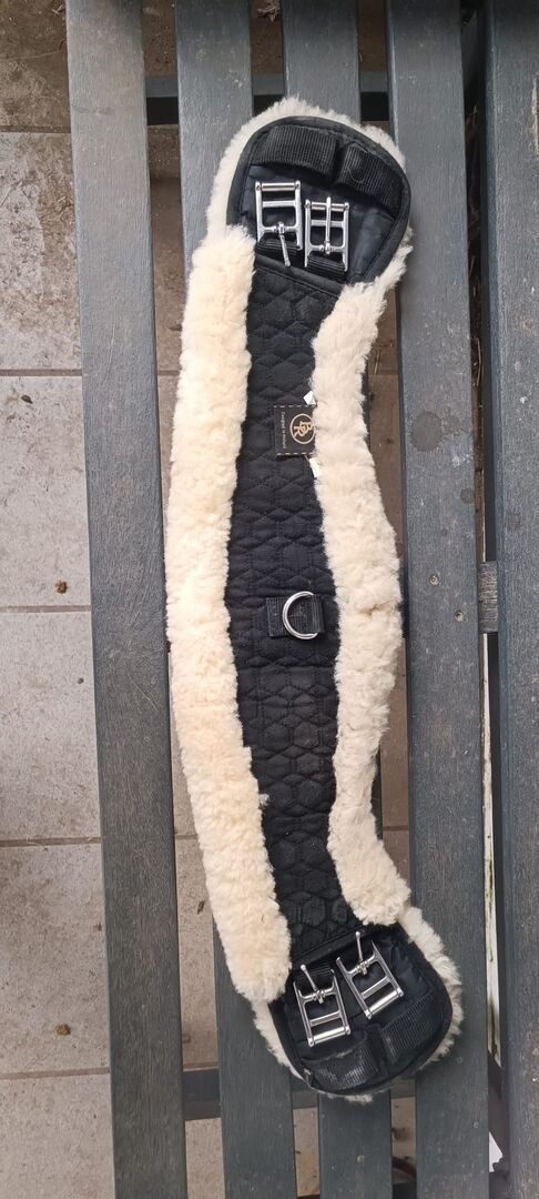 Gebrauchter Sattelgurt von BR, leider mit Loch, wie auf den Bildern erkennbar. Das Loch ist genäht, geht also nicht weiter auf. Das Lammfell ist sehr dicht. NP 120€ Beschreibung vom Händler: Anatomisch geformter, halbrunder Dressurgurt mit medizinischem Lammfell. Dieser halbrunder Dressurgurt bietet den Vorderbeinen mehr Bewegungsfreiheit. Der Gurt wird empfohlen für Pferde bei den der Gurt sich von Natur in der Nähe der Vorderbeine befindet, sodass Hautschäden vermieden werden können. Mit Edelstahlschnallen und einem D-Ring, der das Befestigen von Hilfszügeln ermöglicht. Um die natürlichen Eigenschaften des Lammfells zu erhalten, empfehlen wir, das Produkt bei 30°C mit einem speziellen Lederwaschmittel zu waschen.