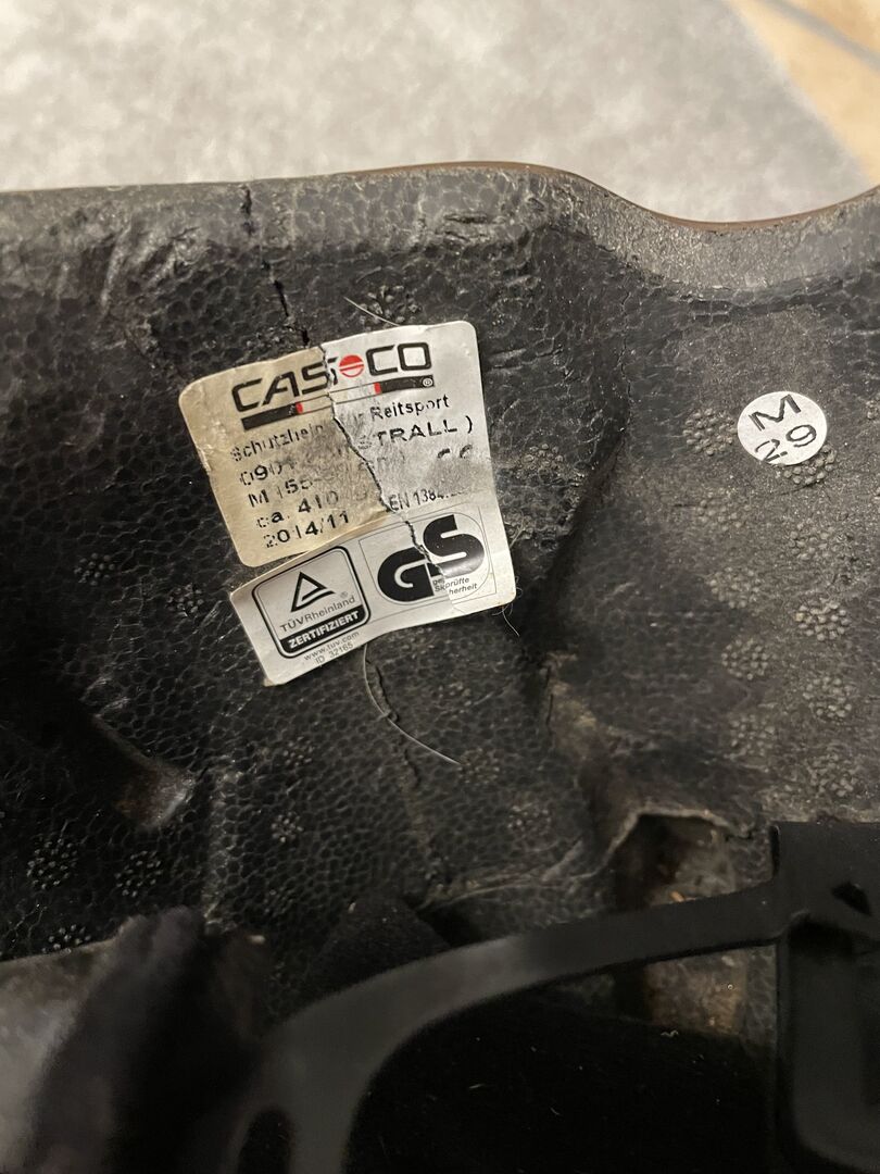 Verkaufe Casio Reithelm in der Große M in braun. Hat Gebrauchsspuren und einen lila Farbfleck. Auf dem letzen Bild sieht man einen leichten Riss innen, der Helm ist jedoch sturzfrei. Das Innenfutter ist auch nicht dabei.