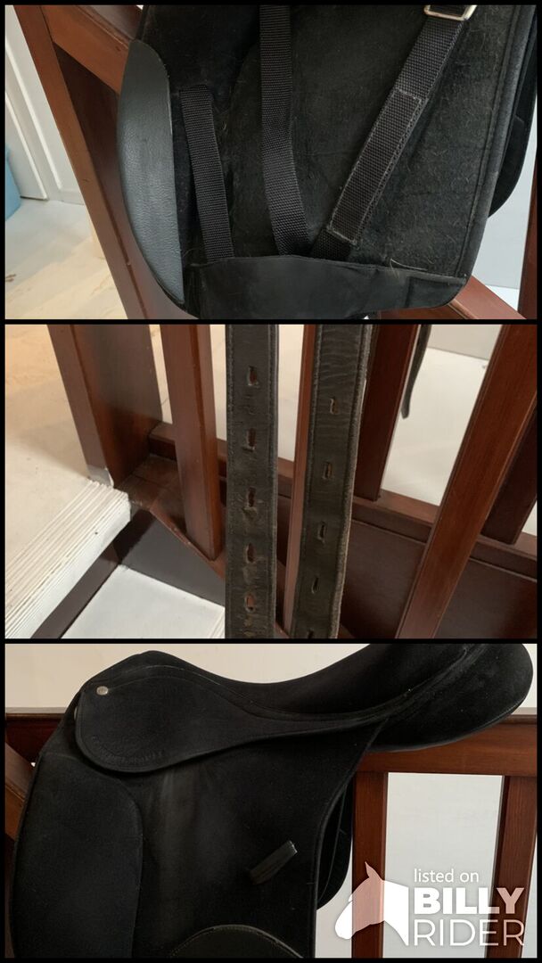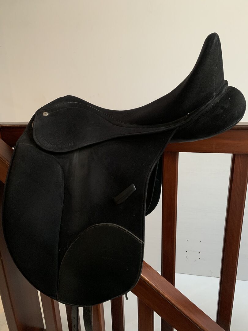 Der Sattel ist aus Synthetik Leder in Wildleder Optik.