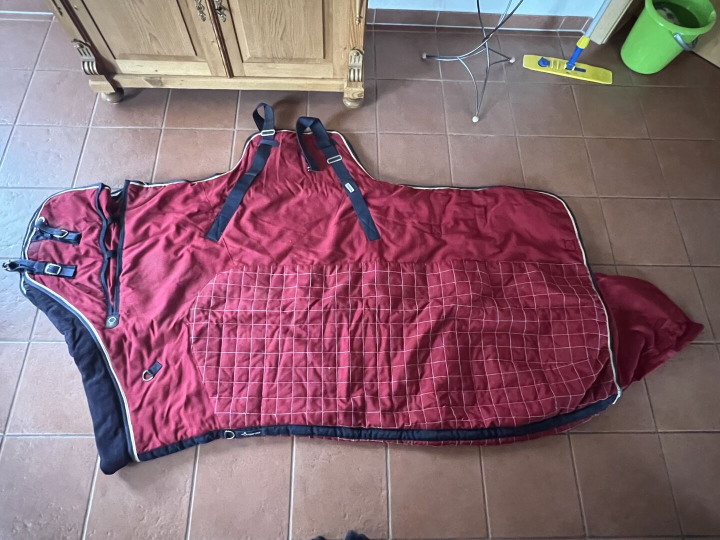 Verkaufe Stalldecke von Fouganza mit 300g Füllung + 100g im Rückenbereich im Größe 165cm. Die Decke hat kleinere Beschädigungen bzw. wurde sie auch schon geflickt. Die Decke ist dennoch funktionsfähig.