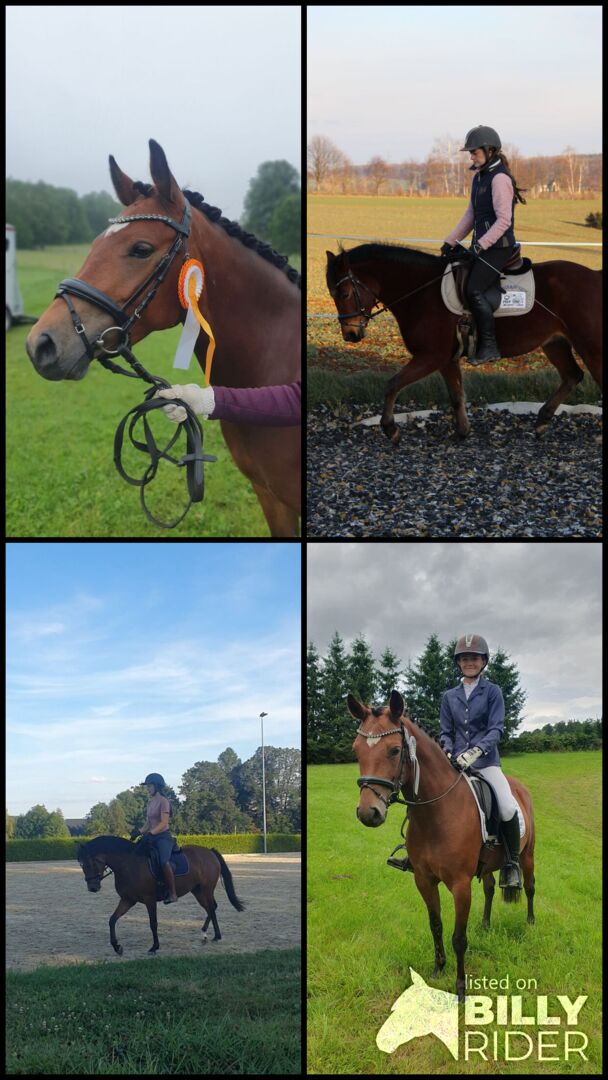 geb. 2020 1,40m Verbandsprämie mit 7,5 super artig und unkompliziert auf dem Turnier Führzügel WB, Dressurpferde A und A Dressur platziert absolut Geländesicher auch allein! Stangen und Cavallettis wurden mit dazu genommen, sonst im Springen aktuell nicht weiter gefördert Hänger fahren ist kein Problem Beim Hufschmied zappelt sie manchmal noch etwas, wird aber auch immer besser ... nichts aufregendes