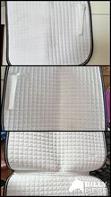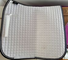 Schöne und sehr große Schabracke. Mit dunkelblau -silberner Einfassung. Neu und unbenutzt. Leider ein kleiner Fleck(siehe Foto)der sicher durch Waschen raus geht.