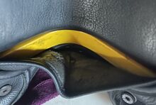 Natürlich gibt es Gebrauchsspuren wo die Steigbügelriemen waren und auch an ein paar anderen Stellen. Aber da ist nichts kaputt nur das Leder ist etwas stumpf.