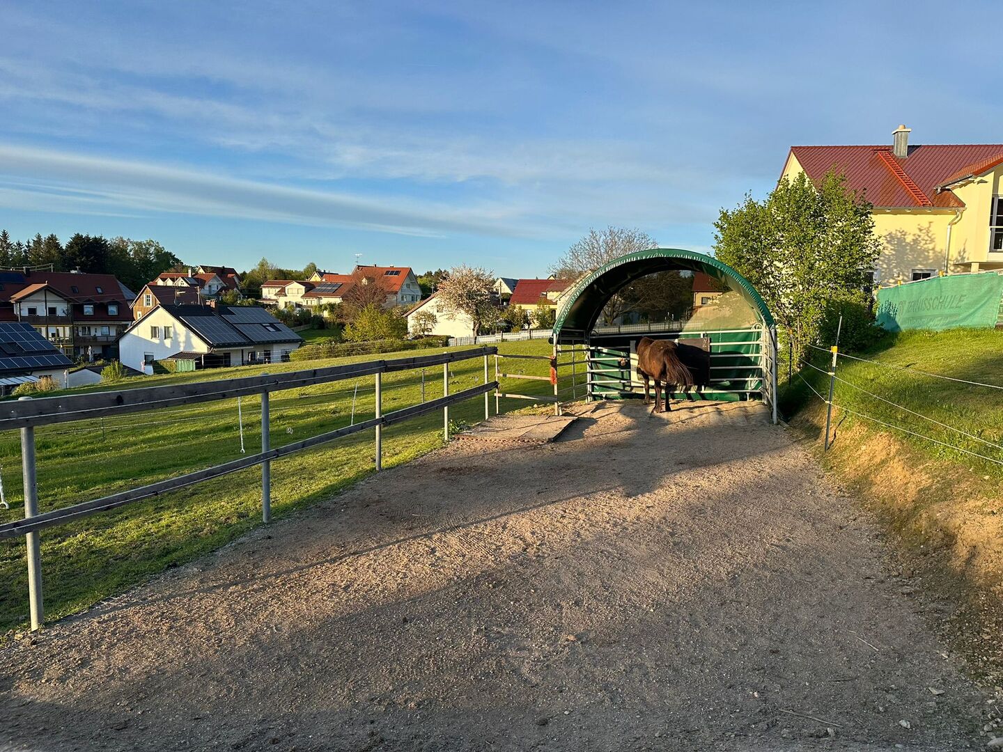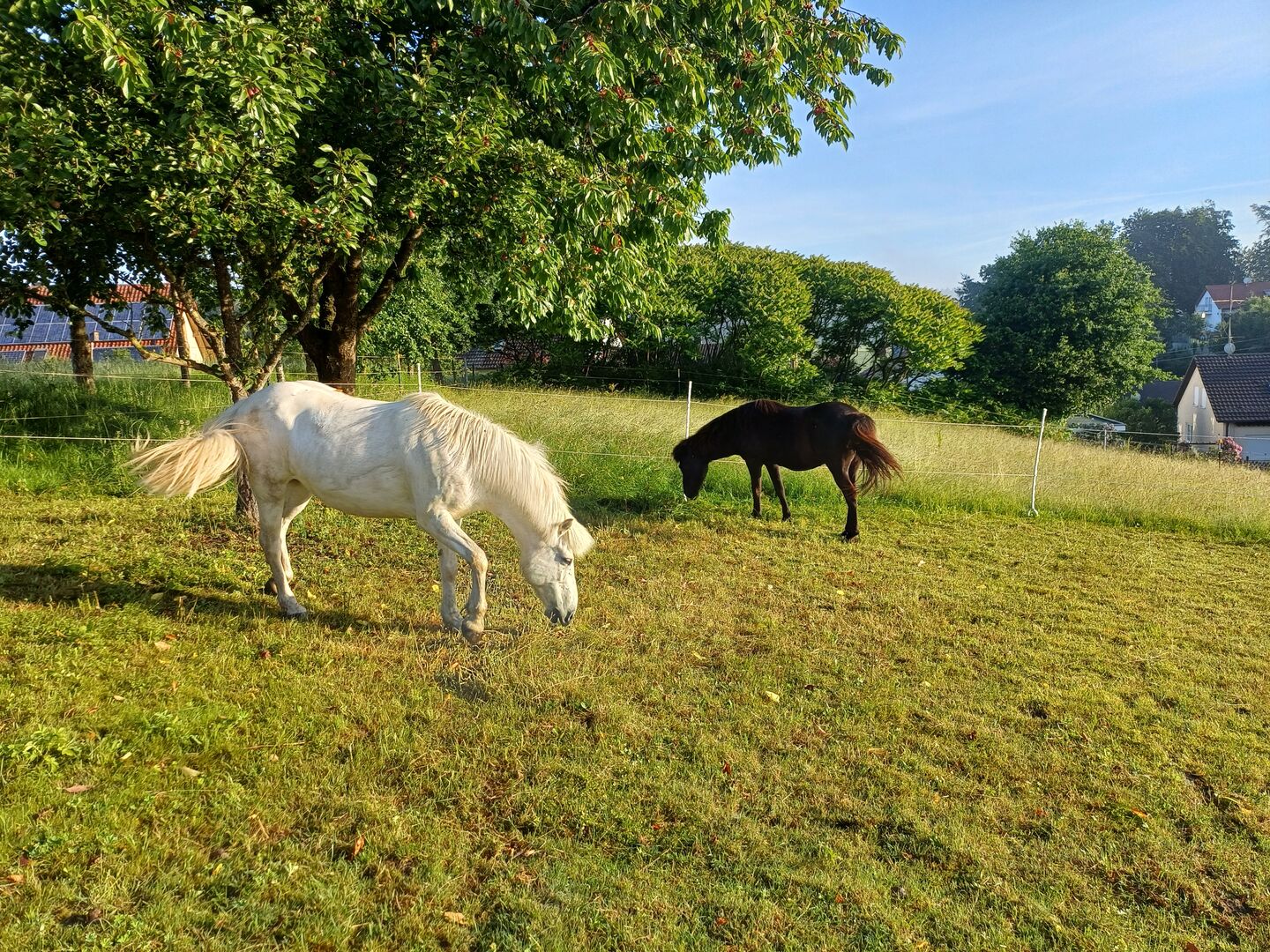 Ich suche für unseren kleinen Offenstall ein bis zwei Kleinpferde zum Einstellen. Ab Oktober 2024 wird unsere 13jährige Islandstute vermutlich alleine stehen. Wir haben einen Paddock mit zwei Futterraufen bzw. mehreren Futternetzen. Im Sommer gibts morgens Portionsweide auf den angrenzenden Koppeln und abends Heu. Im Winter füttern wir ausschließlich Heu. Das Gelände zum Ausreiten ist vor der Haustür :-)
