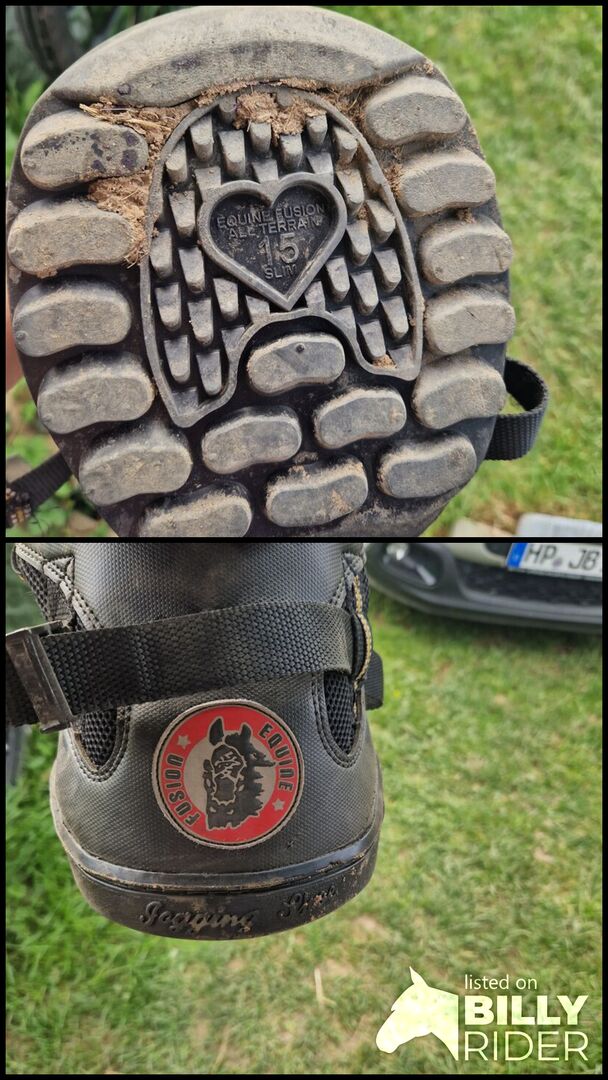 Verkaufe meine nur einmal zur Anprobe und kurz laufen Equine Fussion Hufschuhe in der Größe 15 (2 mal) und Größe 15 stimmt (2 mal.Die Schuhe werden nur Paarweise oder komplett zusammen verkauft.