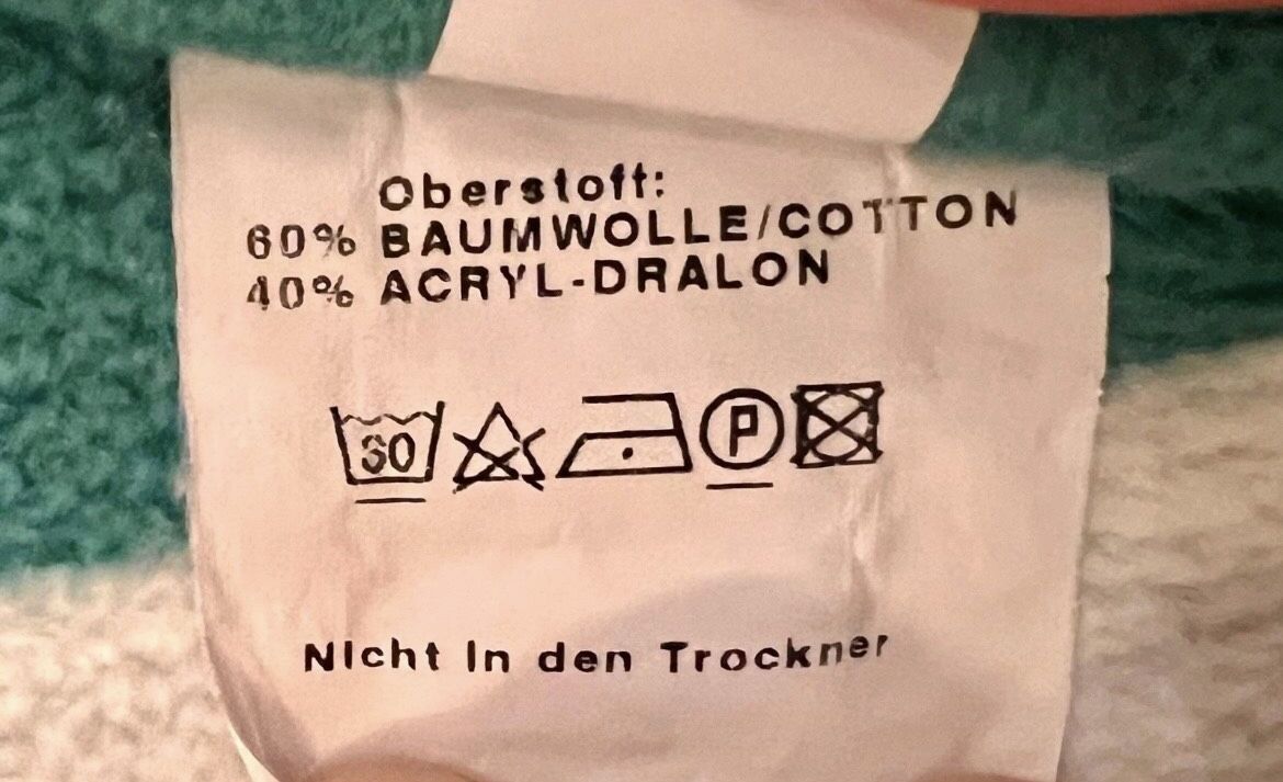 Das von Heimtextilien bekannte Baumwoll-Mischgewebe aus 60% Baumwolle und 40% Dralon (Polyacryl) verbindet die Vorteile der Baumwolle mit den Eigenschaften von Syntetics, weil sie außerordentlich saugfähig und klimatisierend wirkt und trotzdem robust und pflegeleicht bei 40 Grad waschbar ist.