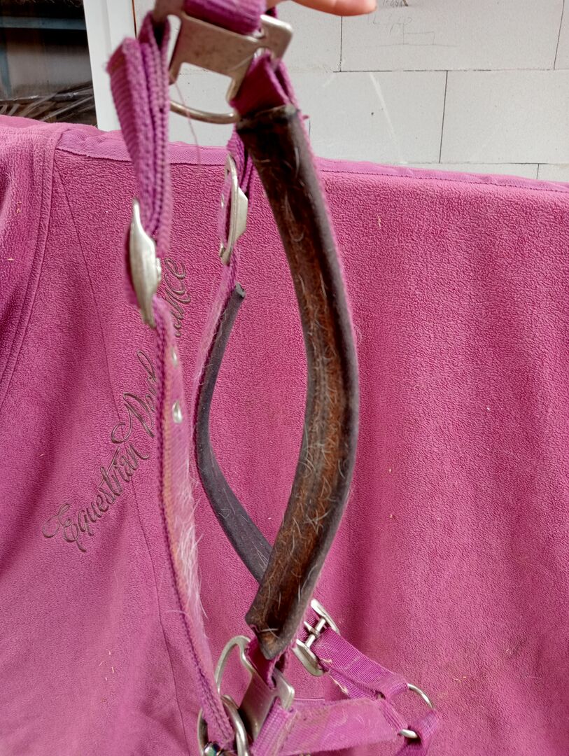 Das Strick habe ich notdürftig repariert, ist also nur für liebe Pferde und gibt es gratis dazu.