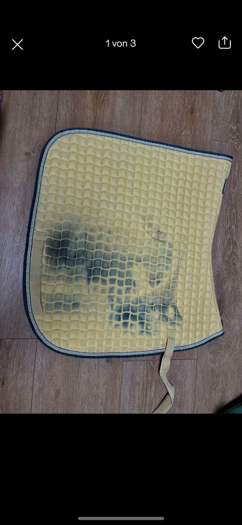 Ich verkaufe diese schabracke hatte sie vlt 2 mal drauf, die verfärbungen sind vom sattel und werden beim waschen sicher etwas weniger. Auf wunsch würde ich sie nochmal waschen Bei fragen einfach melden:)