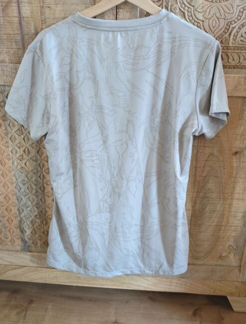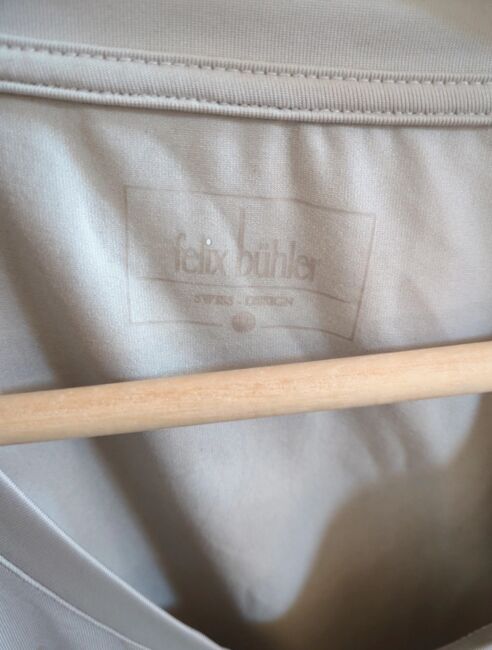 T-Shirt von Felix Bühler in Creme/beige/grau mit schönem Pferdemuster, Größe L (Etikett nicht mehr lesbar). V-Ausschnitt, hinten etwas länger als vorb Wenig getragen und pfleglich behandelt. Bei Krämer Pferdesport gekauft.