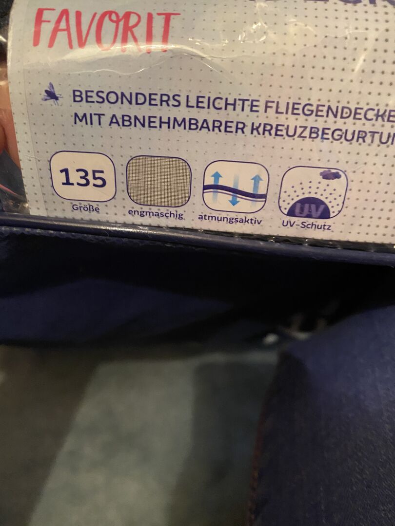 Biete nagelneue Fliegendecke in Silver mit blauen Bauchgurten.