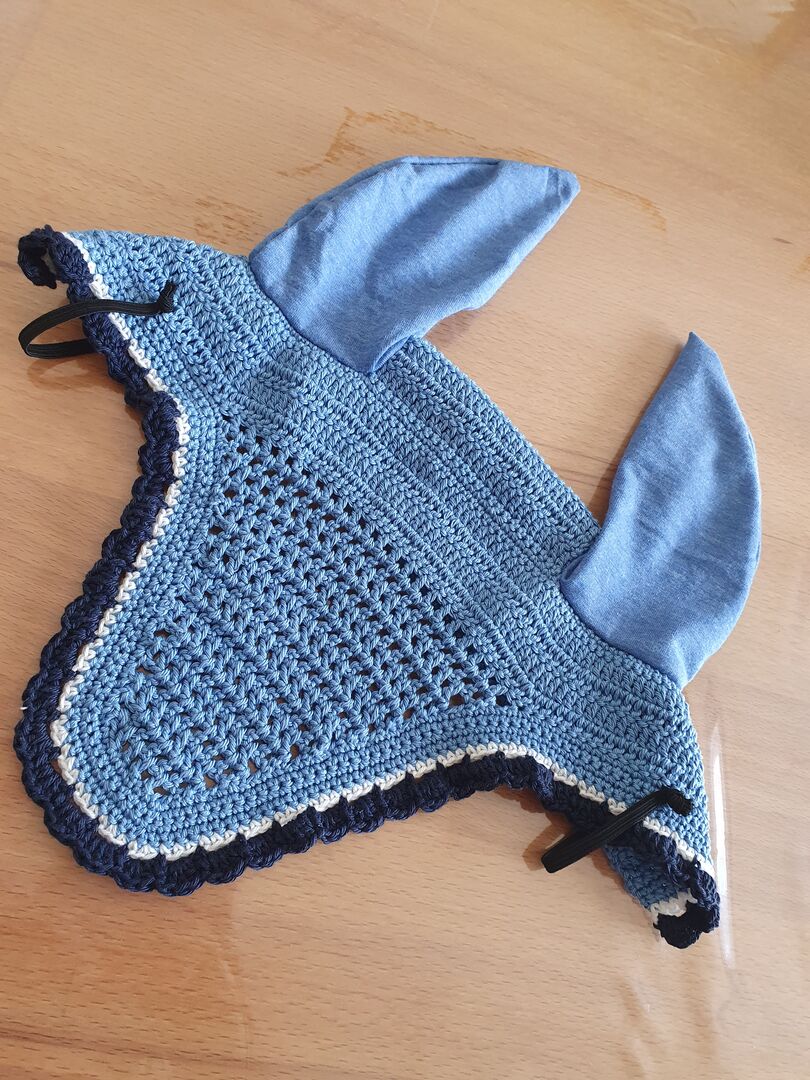 verkaufe hier eine unbenutzte selbstgemachte Fliegenhaube in Größe Vollblut/Cob in blau.