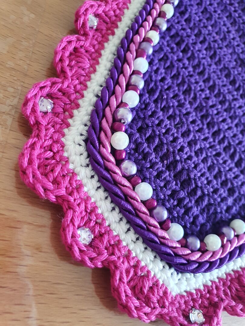 verkaufe hier eine unbenutzte selbstgemachte Fliegenhaube in Größe Warmblut in lila-/ Berrytönen.
