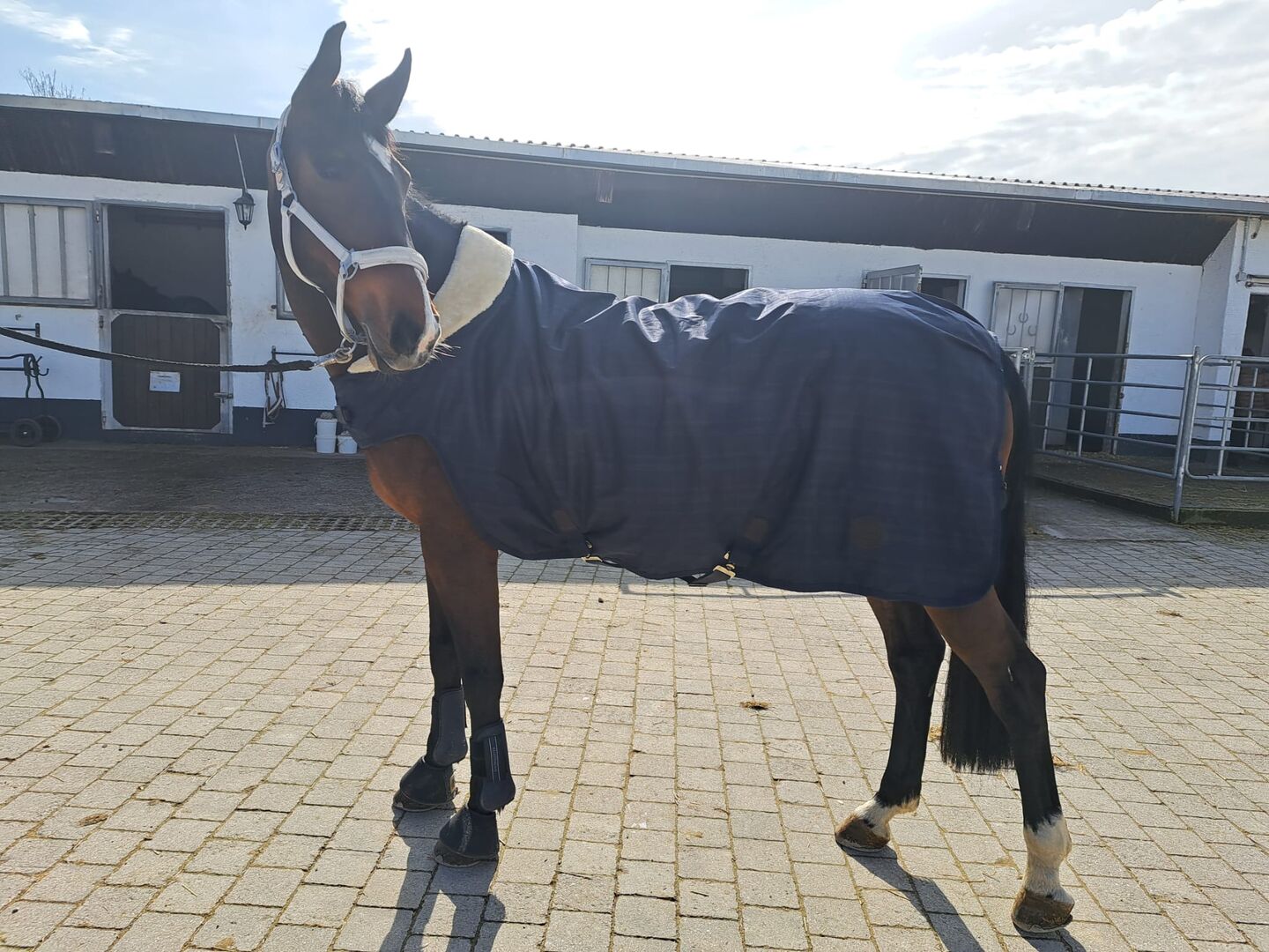 Führanlagendecke 50g gefüttert, passend für 145 cm und 155 cm Rückenlänge, wasserabweisend, Brustverschluss unterlegt, damit keine Scheuerstellen entstehen, 2 Bauchgurte, Schweifriemen, mit Fellkragen