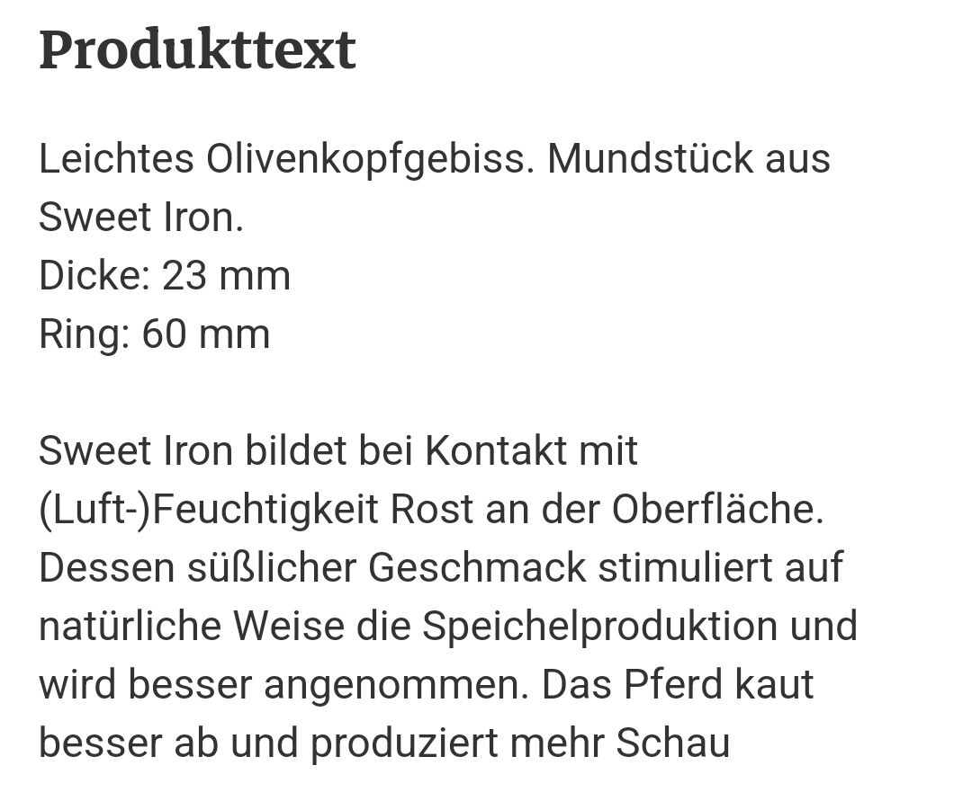 Gebiss Sweet Iron 11,5cm (Harrys horse Sweet iron)