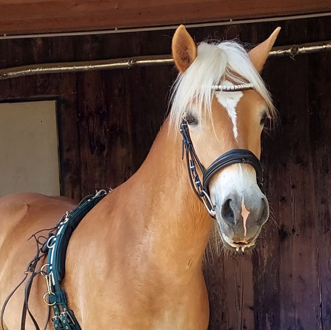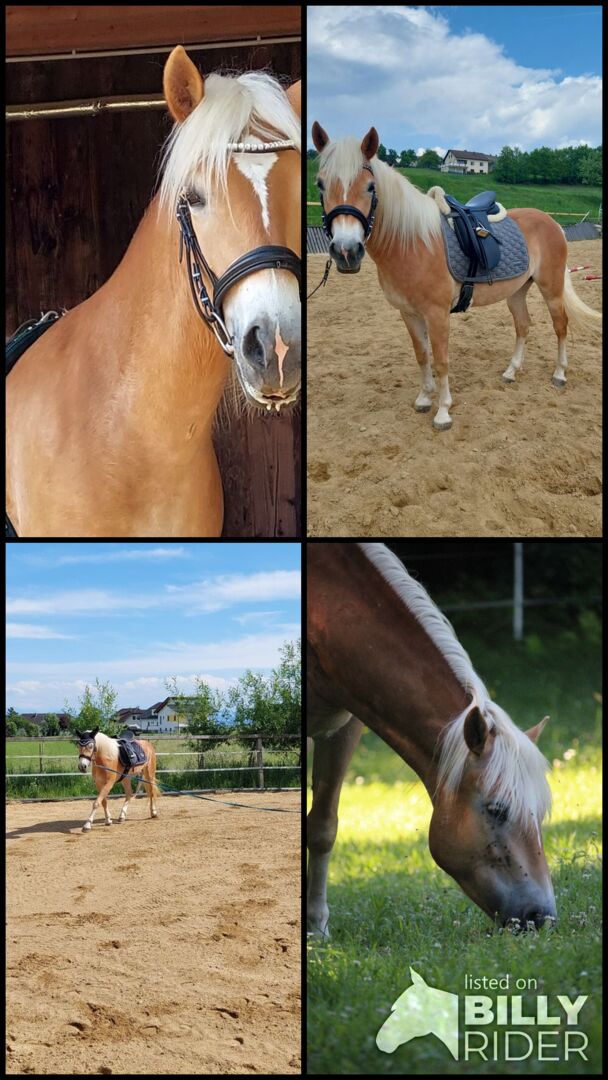 Die 3 jährige Stute Enna (linkes Bild), wird gerade angeritten und erweist sich als sehr brav und willig. Sie kennt ein paar Übungen von Parelli die mit professionellen Unterricht erarbeitet wurden. Sie ist gut verträglich mit anderen Pferden (derzeit in einer Stutenherde) und hat einen sehr liebevolle Charakter. Enna ist 1,43m groß, will immer gefallen und ist eine totale "Schmusebacke".