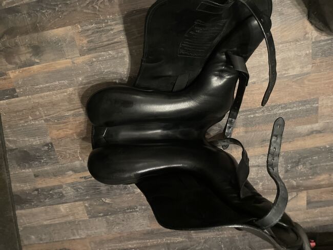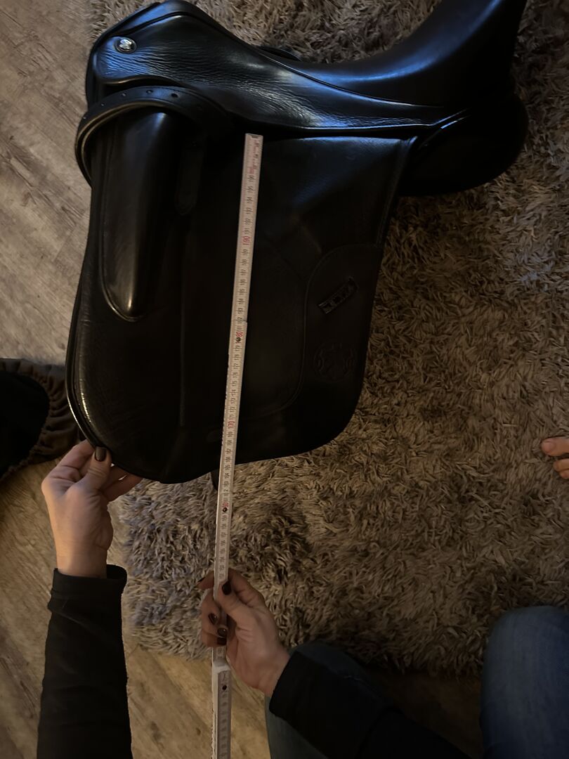ASP, 17,5 Zoll, 3/4 Pauschen mit Lackmond. Der Sattel wurde von einem Sattler der Firma Hennig gerade geprüft. Die Kratzer er auf dem Bild sind beim Umzug entstanden, der Sattel hatte nie einen Sturz.