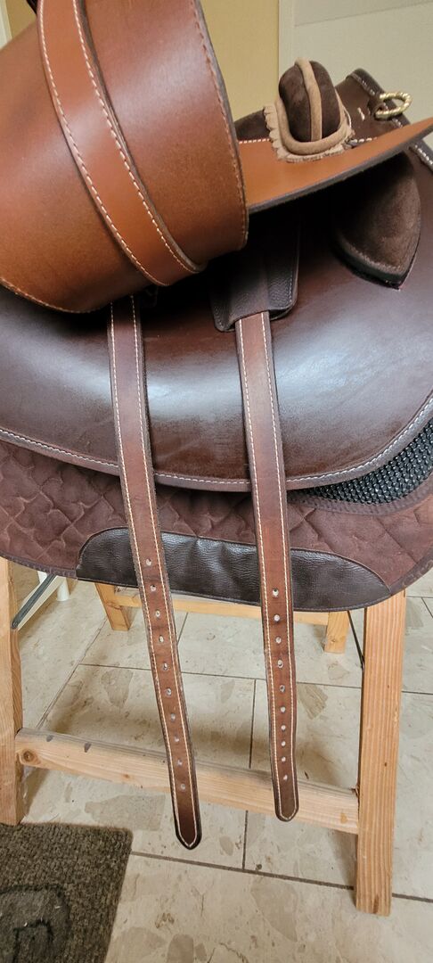 Ich möchte hier meinen superbequemen Hidalgo Nevada spezial Wanderreitsattel verkaufen. Der Sattel ist so eine Sonderanfertigung. Die Farben sind Cognac und Mokkabraun mit hellen Nähten. Ich habe ihn selber höchstens 10x geritten-Megabequem!!! er ist also wie neu. Er hat kleine Pauschen die man bei Bedarf auch entfernen kann, da mit Klett befestigt. Die Klettkissen sind extra noch mit Filzverstärkter Einlage. Da er nur sehr selten und kurz auf dem Pferd gelegen hat, hat er sich auch noch nicht gesetzt. Gebe ihn ab, da ich ihn leider aus gesundheitlichen Gründen nicht mehr nutzen kann, aber zu schade ist um bei mir im Flur ungenutzt rumzustehen.