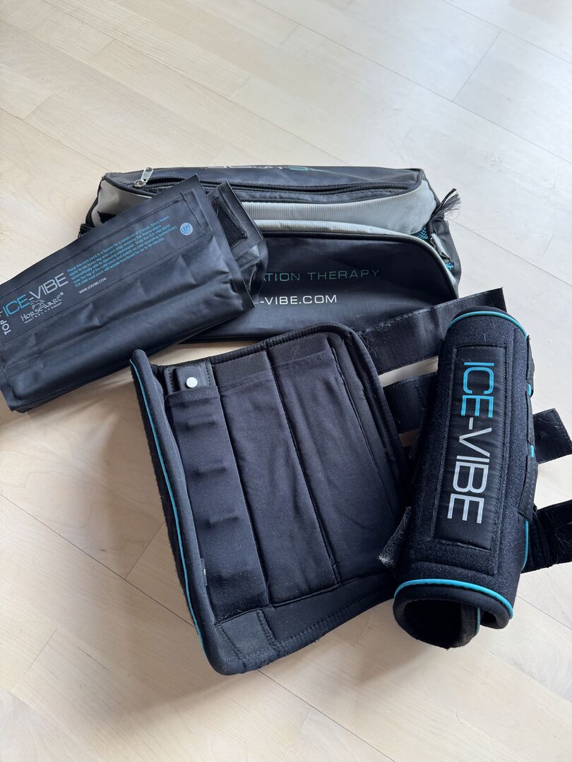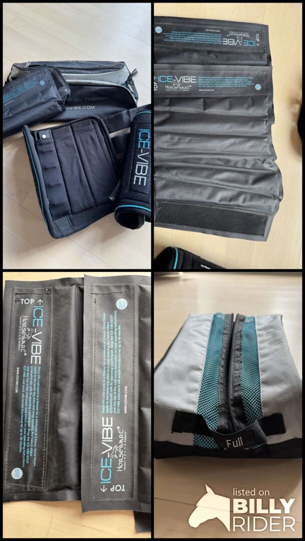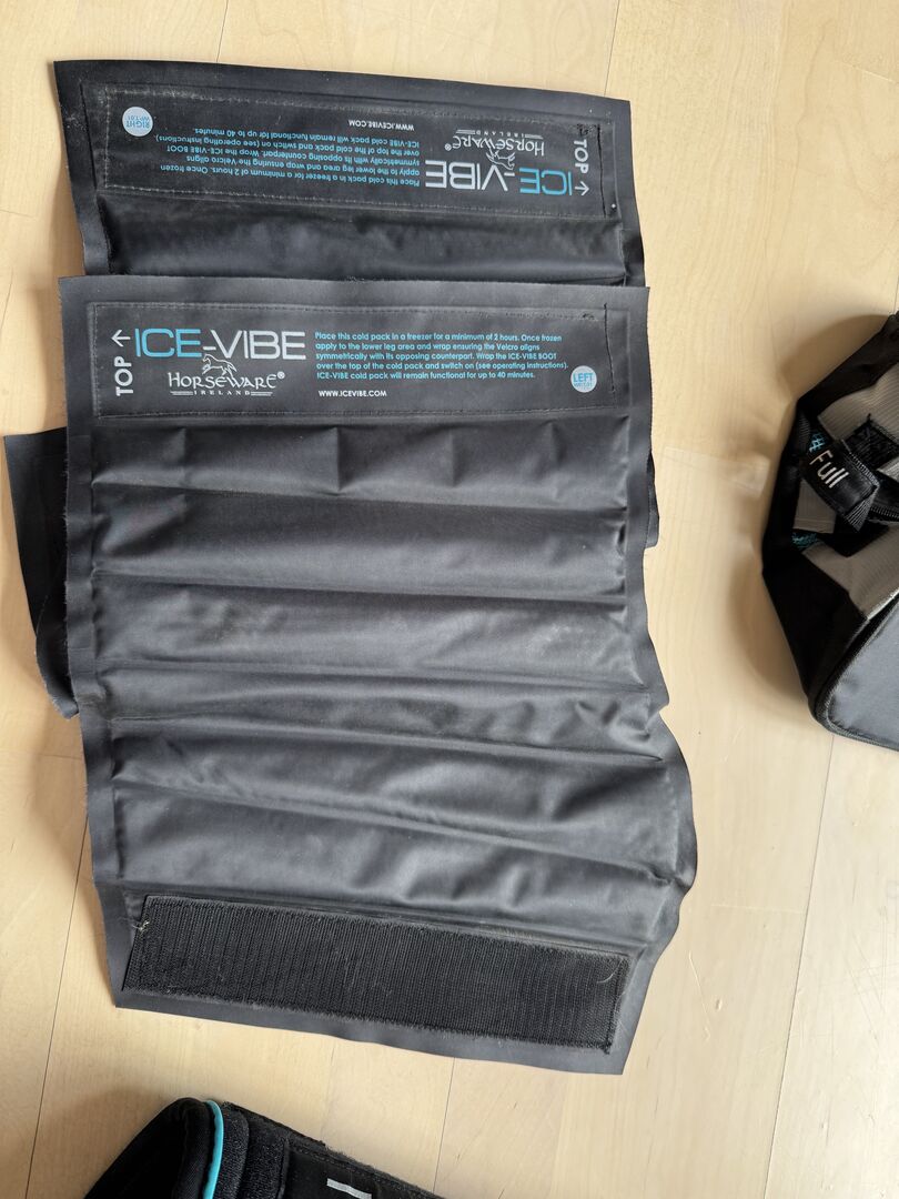 Selten benutzte Therapie Gamaschen (ICE-VIBES) der Marke Horseware Irland. Größe: Full Die Gamaschen sind für die beiden Vorderfüße, können aber auch hinten angebracht werden. Gamaschen kommen mit Kühlpacks, wie im Bild , sowie Massageinstrument links und rechts. Ladekabel ist aber exklusiv ( USB-C) ! Neupreis: 270€ !