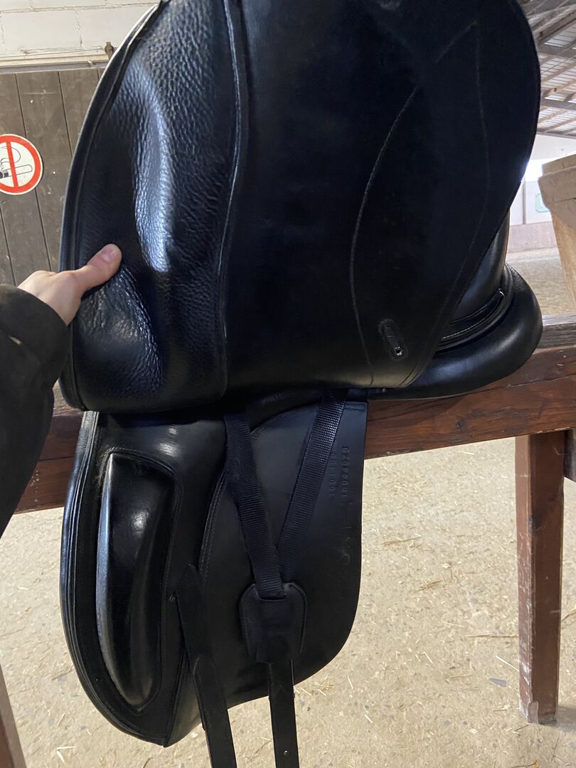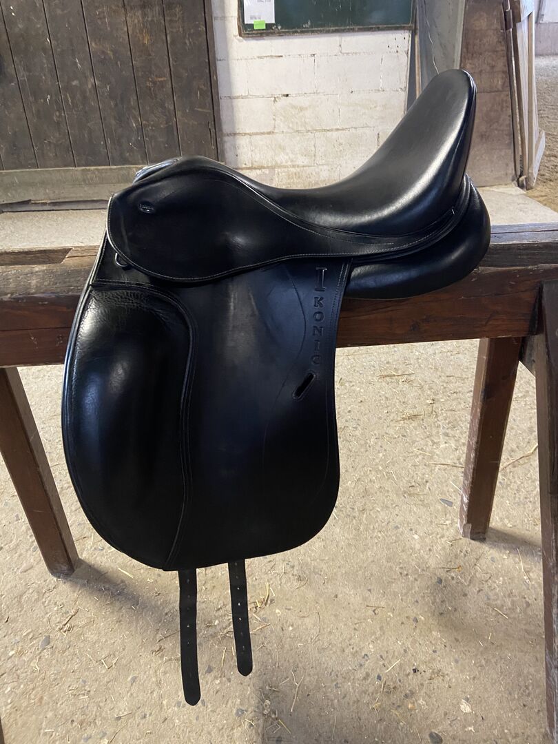 Dressursattel der Marke Ikonic mit einem Sitz von 16,5“ zum Kauf an. Ich selbst habe ihn 2019 von einem Ikonic Fachhändler gekauft (NP: 2.300€).