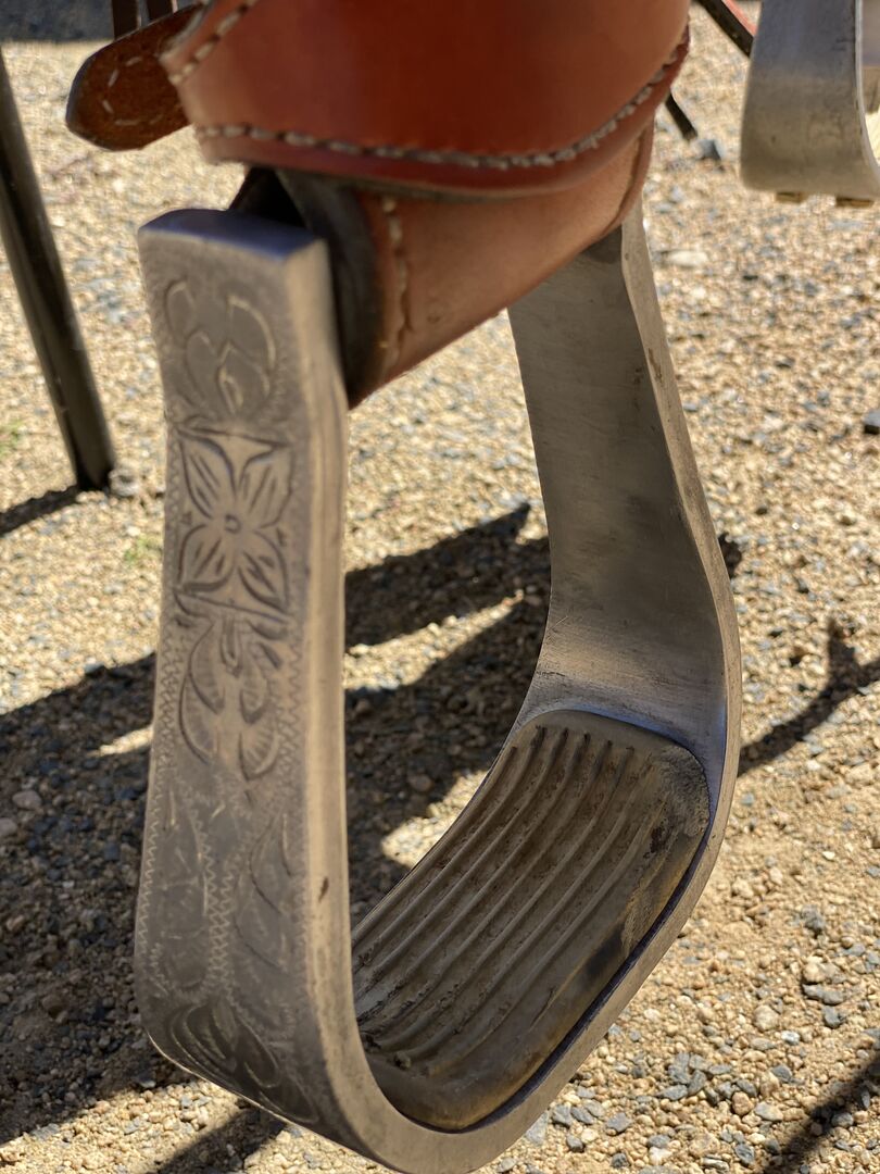 John Allington hat diesen Sattel für mich angefertigt, damit er für das Freizeitreiten geeignet ist und gerade genug Stil für Western-Dressur und Reiten hat. Aufgrund meiner sich entwickelnden körperlichen Komplikationen kurz nach dem Kauf wurde er wenig benutzt, regelmäßig gereinigt und geölt und unter einer Satteldecke in einem Sattelschrank aufbewahrt. Hochwertiges australisches Leder, gegerbt im traditionellen Eichengrubengerbverfahren und mit einem Talg, der die Langlebigkeit des Leders verlängert. Wildleder 17" Sitz mit extra bequemer Polsterung. 7,5 Kopfeisen, 12 Barrel, Beschläge und Steigbügel echt versilbert. Derzeit passend für 15,3 QH stämmige Stute und athletischen TBcross. Weitere Messfotos auf Anfrage erhältlich