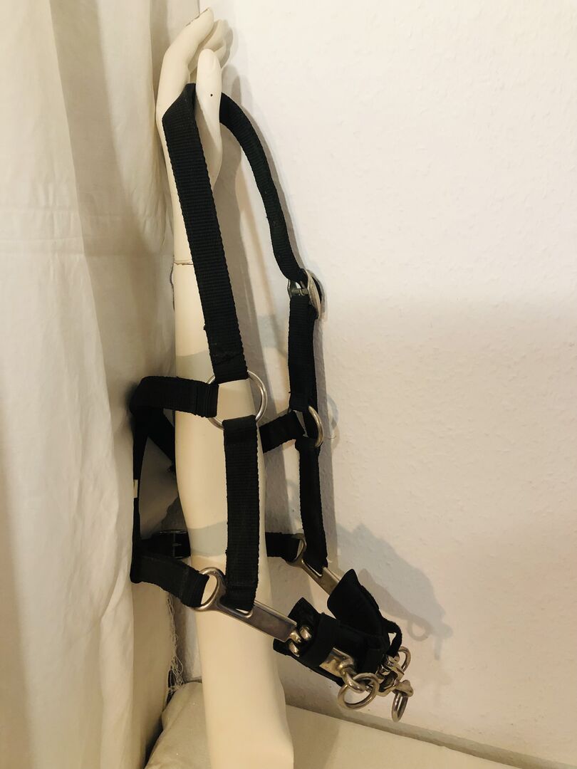 Leichter Stoff-Kappzaum in sehr gutem Zustand Gr. Full, 6 Größen verstellbar an allen Hauptriemen Schwarz Mit dickem, abnehmbarem Gelkissen unter Gelenken Leicht zu reinigen Klettriemen alle in Ordnung