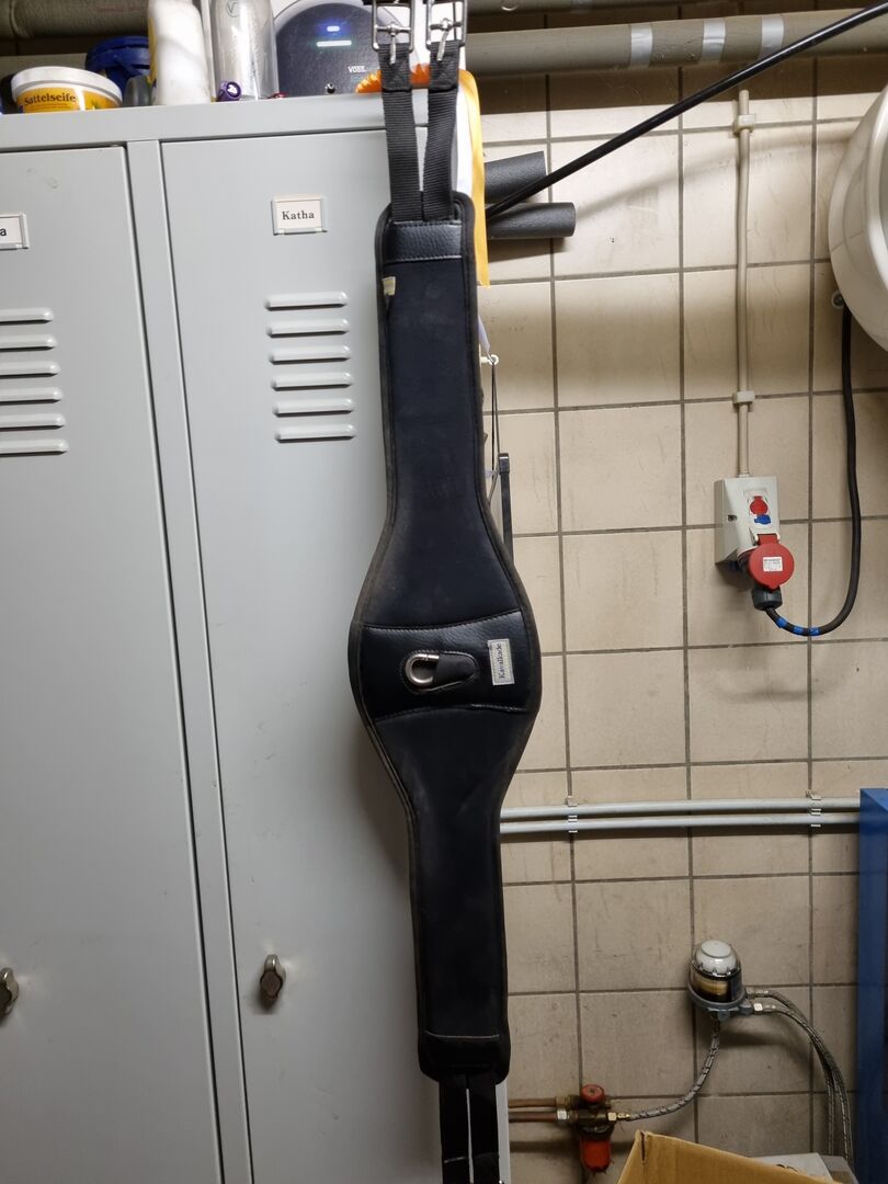 Ich verkaufe hier meinen Sattelgurt der Länge 115 cm. Es handelt sich um einen Gurt mit Memoryschaum. Am Brustbein wird der Sattelgurt für eine optimale Druckverteilung breiter. Außerdem besitzt er für Ausbinder einen Karabiner, sodass dieser bequem am Sattelgurt befestigt werden kann. Da ich meinen Sattel verkaufe und der neue Sattel einen Kurzgurt benötigt, gebe ich den Sattelgurt nach einem knappen halben Jahr Nutzung ab.