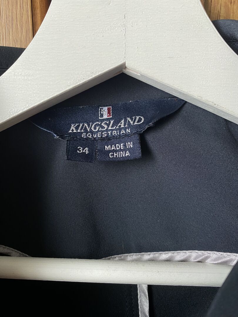 Ich verkaufe mein elegantes Turniersakko von Kingsland in Größe 34. Farbe: grau-bläuliches Schwarz Das Sakko wurde nur 3-4 Mal bei Reitprüfungen getragen und ist in einem sehr gepflegten, neuwertigen Zustand. Es wurde stets sorgsam behandelt und im Kleidersack aufbewahrt. Keine Flecken, Risse oder Abnutzung.