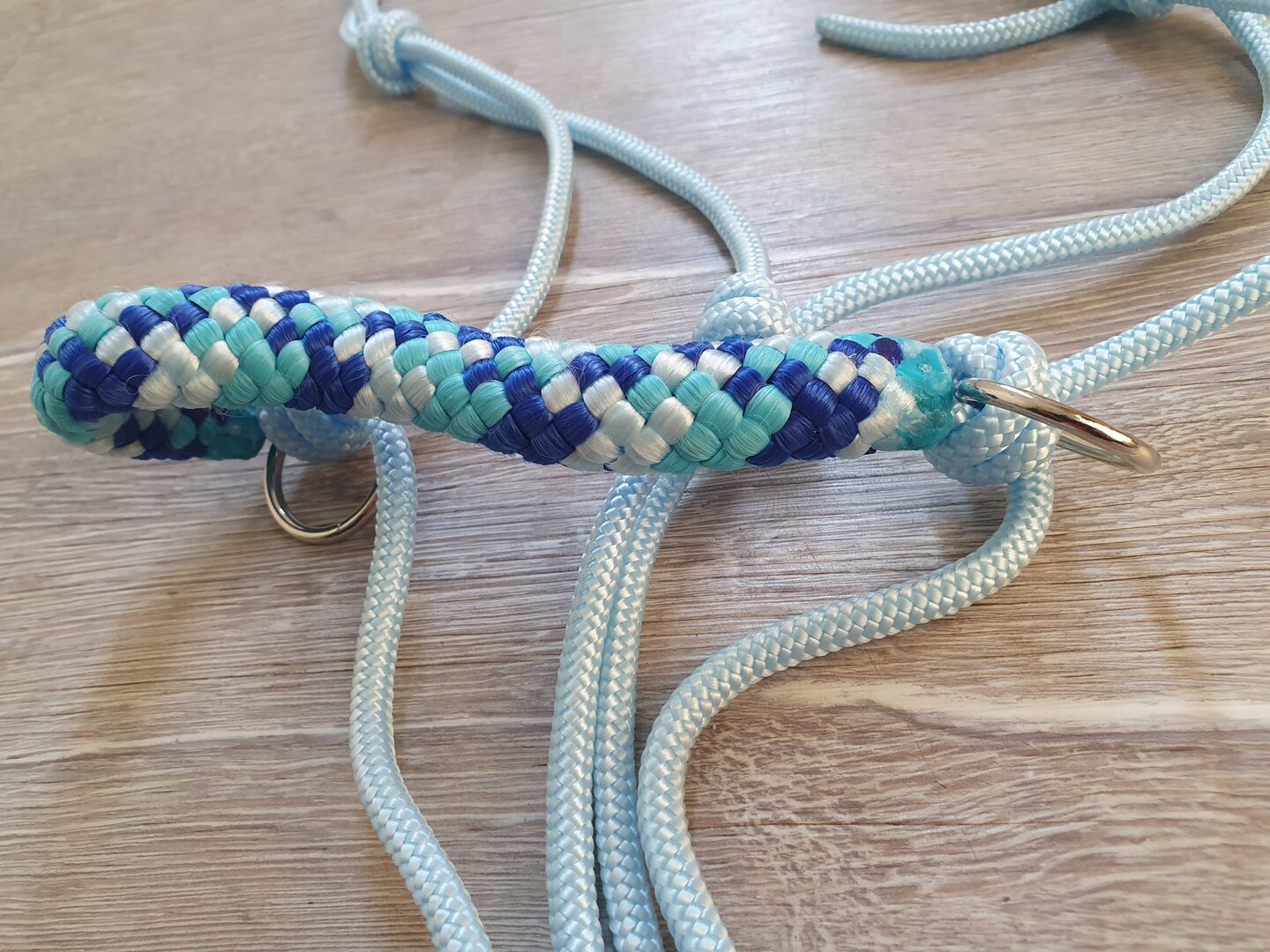 Knotenhalfter mit Zügeln und Arbeitsseil (Flechtplatz)