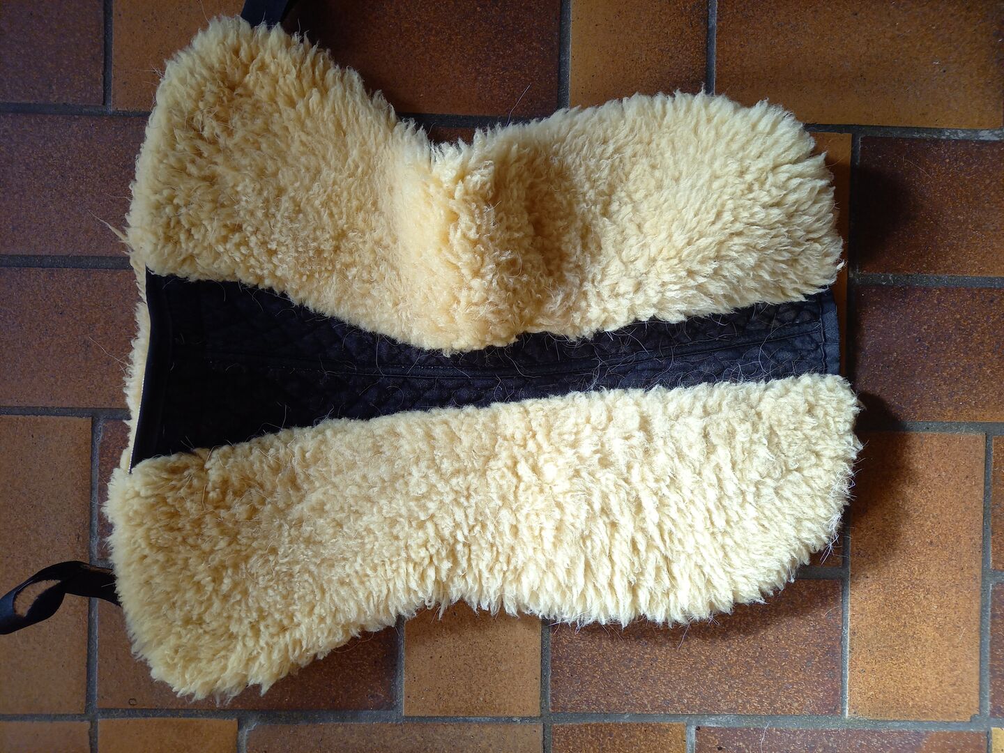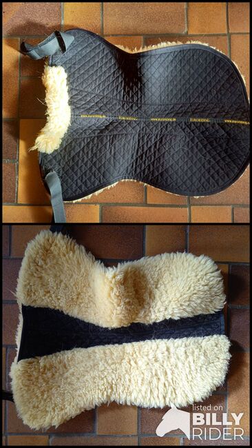 Verkaufe hiermit ein Lammfell-Sattelkissen von Euroriding, mit Wirbelsäulenkanal und Fellkranz vorne sowie Klettbefestigung / Strupfen