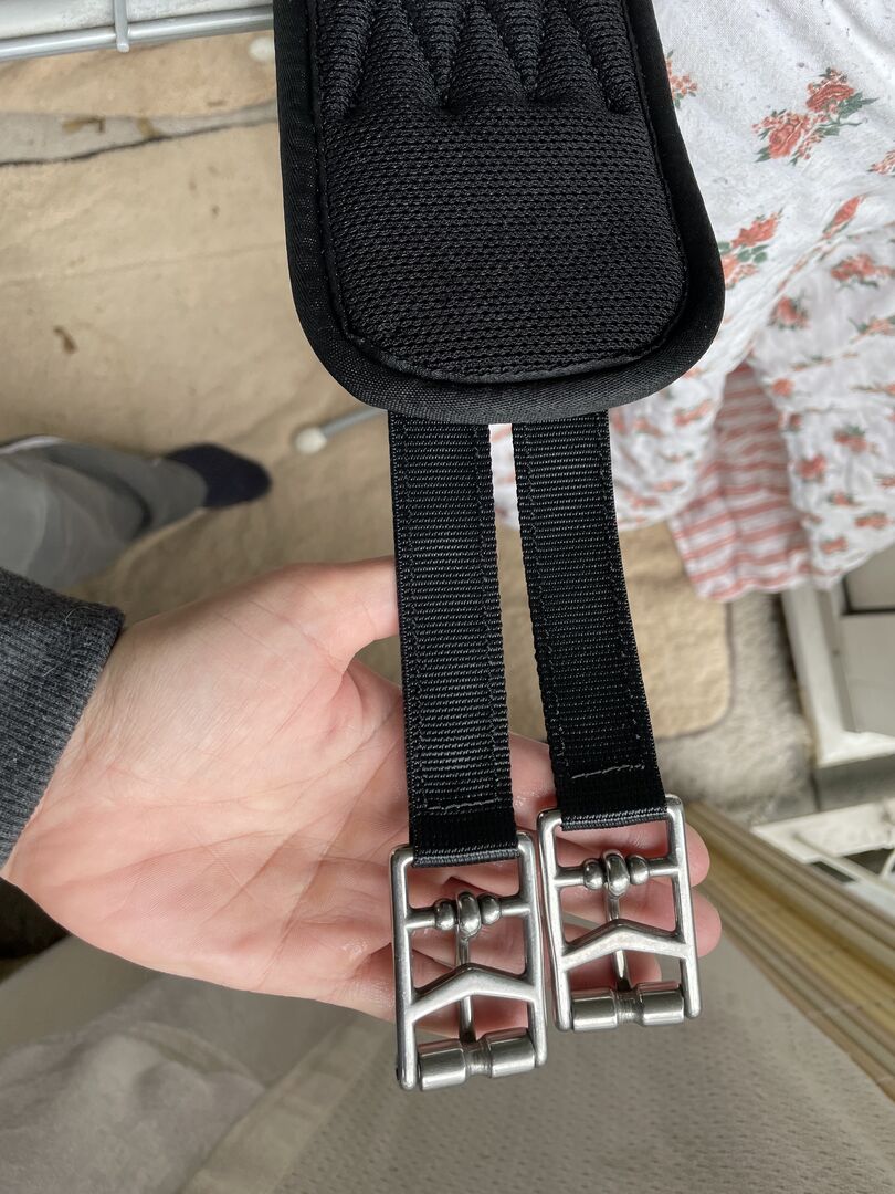 Butterfly Langgurt Rainer hoher Tragekomfort rutschfester Sitz des Sattels ergonomisch geformt ideal für Pferde mit Gurtzwang Der Langgurt Rainer von Butterfly ist aus atmungsaktivem MEMOFOAM®-Gewebe gefertigt, das durch seine semi-elastischen Eigenschaften hohen Tragekomfort garantiert. (MEMOFOAM® wird durch die Körperwärme weich und verfügt über eine Material-bedingte Elastizität). Die weich gepolsterte Bauchauflage aus synthetischem Kautschuk verhindert ein Verrutschen des Sattels. Der ergonomische Schnitt mit großer Ellenbogenfreiheit und die weich gepolsterte Bauchauflage aus synthetischem Kautschuk führen zu einer optimalen Druckverteilung und entlastet das Brustbein. Mit Rollenschnallen aus rostfreiem Edelstahl. Ideal für Pferde die unter Gurtzwang leiden. Wichtig: Beim Waschen bitte die Schnallen schützen! waschbar bis 20°C Neupreis 165€! Privatverkauf daher keine Rücknahme Geldrückgabe oder Garantie.