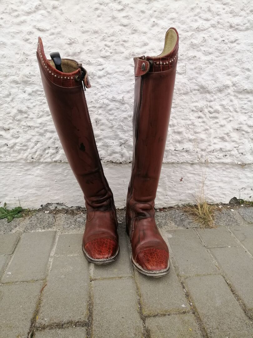 Verkaufe Tolle braune Lederstiefel mit Glitzersteinchen Schuhgröße 38 (37,5cm) Schafthöhe mit Absatz: 48 cm (hinten gemessen) Wade (aussen an der weitesten Stelle): 38cm - ich selbst trage Wadenweite 36 (bei Cavallo Stiefel) und der Stiefel passt wunderbar. Knöchelweite: 30cm Top Zustand, Stiefel wurden nur wenig getragen. Versand: 4 EUR