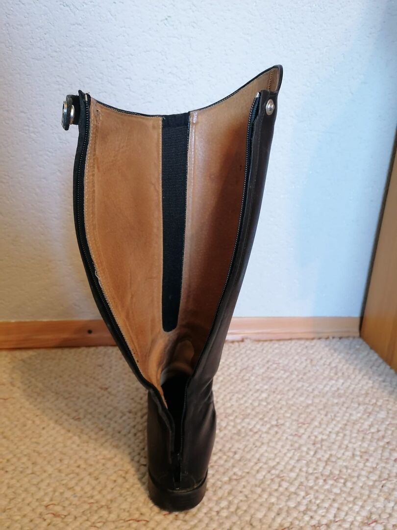 Der Volllederstiefel ist eher schmal geschnitten und nur wenig gebraucht worden. (Insgesamt nur drei Mal getragen).