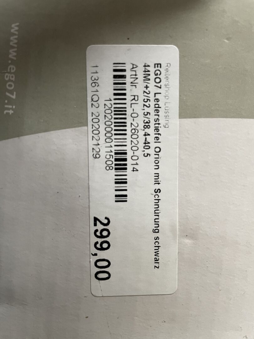 Ich biete meine neuen Reitstiefel von EGO7 zum Verkauf an. Lederstiefel Orion mit Schnürung. Sie wurden nur zur Anprobe getragen. Größe 44, Weite 38,5-40,5 cm, Höhe 52,5 cm Neupreis liegt bei 299,- Preis zzgl. Versand