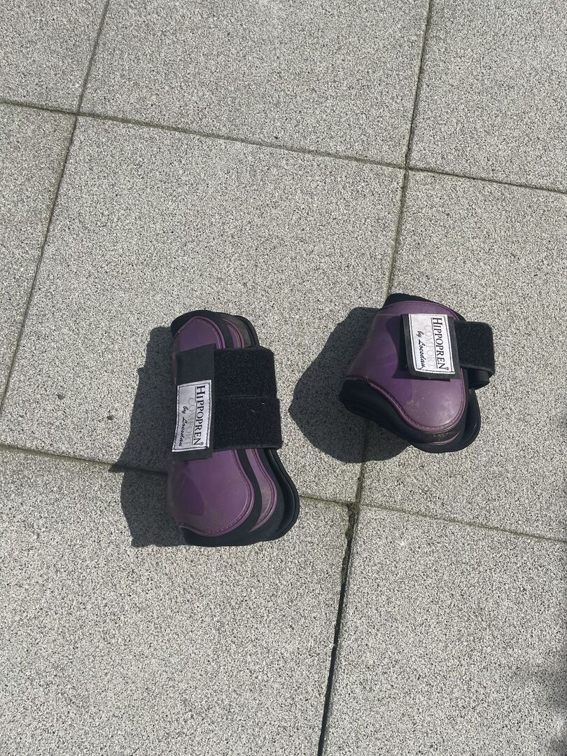 Lila Gamaschen Loesdau Vorder- Gamaschen Grösse M Hinter- Gamaschen Größe L Hat meiner Cob Stute Stockmaß 1,60 passend gepasst bei L und M kein Riesen unterschied.