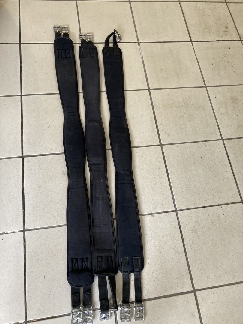 Biete 3 Sattelgurte mit Geleinlage, auf einer Seite sind Schnallen mit Feder, zum leichteren Nachschnallen, auf der andere Seite normal Schnallen- kein Gummizug. 2x 135 cm und 1x 140 cm vorhanden. Je 23 €