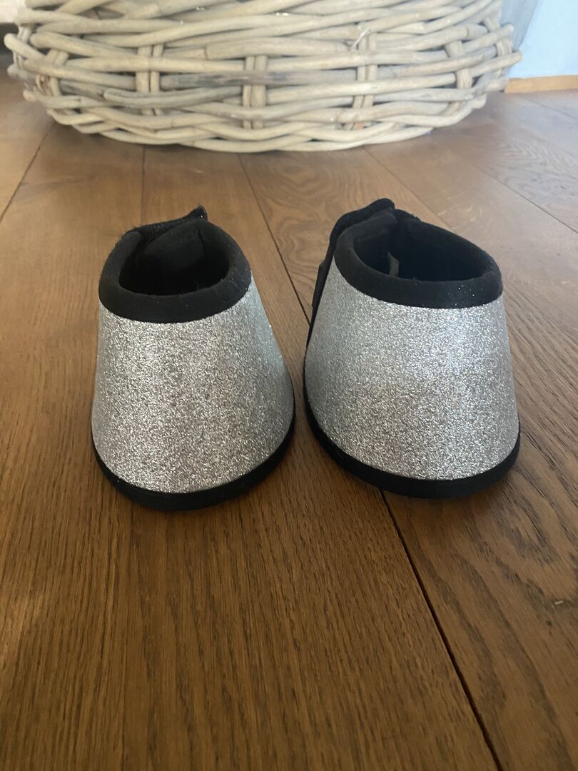 wir verkaufen hier neue Hufglocken von der Marke Br. in der Gr. M. Die Springglocken haben silbernes Glitzer.