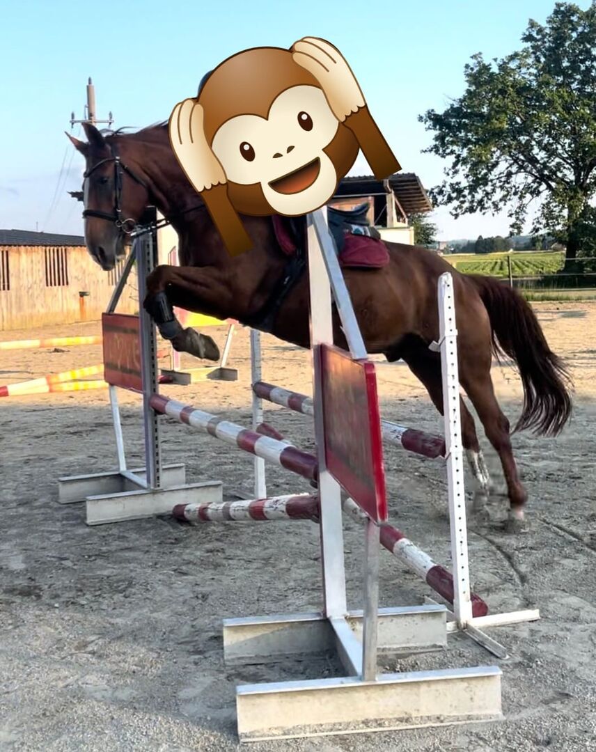 Er hat gutes potenzial fürs Springen er liebt es und verweigern gibt es bei ihm nicht.