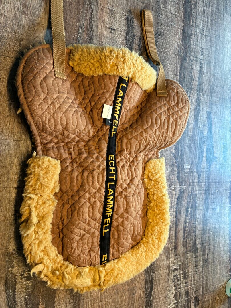 Ich biete hier ein gebrauchtes Lammfellpad an, welches zwar funktionstüchtig ist, aber optisch leider nicht mehr hübsch ist. Es ist am hinteren Fellrand an einer Seite arg gerupft. Das Fell auf der Unterseite ist dick und voll intakt. Maße auf den Bildern zu sehen. Versand inkl.