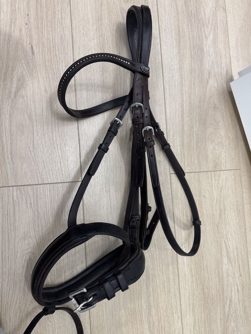 Edles Zaumzeug von Passier in dunklem braun, Englisch verschnallt, Warmblut Größe Anatomisches Genickstück, weich unterlegt Alle Steine im Stirnriemen vorhanden, Schnallen einwandfrei, Leder immer gut gepflegt