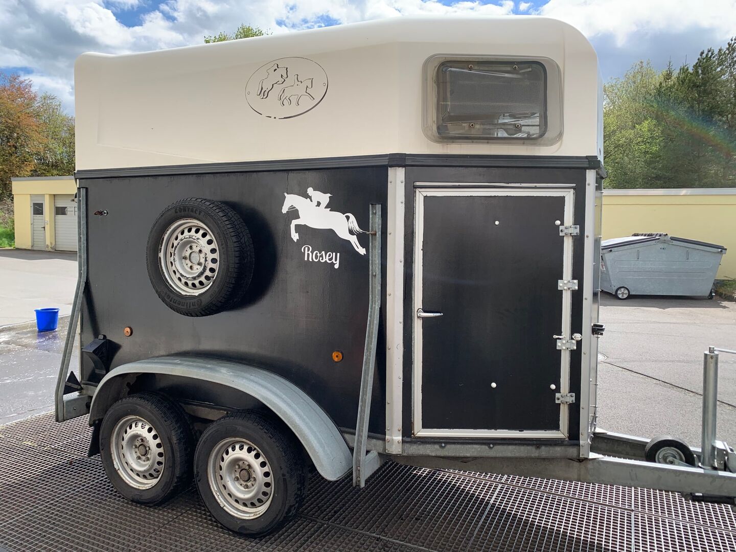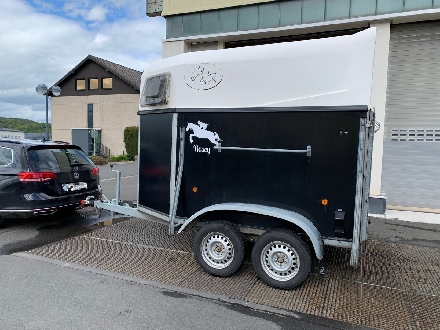 Gut erhaltener und gepflegter Böckmann Uno Baujahr 1997 für 1 Pferd. Holzaufbau mit Polydach. Ideal für den Transport von 1 Pferd (viel mehr Platz als in einem Zweierhänger). Kann aufgrund des geringeren Gesamtgewicht mit vielen Zugfahrzeugen gefahren werden, die einen Zweierhänger nicht ziehen dürfen. Wir fahren jetzt überwiegend 2 Pferde, weshalb ein grösserer Hänger sein muss und wir diesen Uno anbieten. TÜV neu (bis März 2023) Erneuert wurden: - Bodenplatte mit vergossenem Boden (siehe Bilder) - 4 neue Reifen - Bremsbeläge - Fahrwerksdämpfer - Zugkupplung mit Auflaufeinrichtung (inkl. Dämpfer) - Stützrad Nachgerüstet wurde eine Sattelkammer in der Eingangstür. Der Anhänger hat eine 100km/h - Zulassung.
