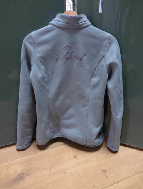 Zip Langarmshirt polartec Powerstretch von pikeur in Größe 40, Modell Dina aus 2022, Farbe Dove blue oder Sky blue. Mit Reißverschluss vorn, innen weich gefüttert. Pikeur Patch auf dem linken Ärmel, Rhinestone labeling auf dem Rücken. Fällt wie gewohnt nicht sehr groß aus, passt 38 bis 40. Wenig getragen als unteren layer, pfleglich behandelt und immer mit Feinwaschmittel gewaschen. Kleiner Materialanspruch im Rücken über dem labeling. Neupreis 119€