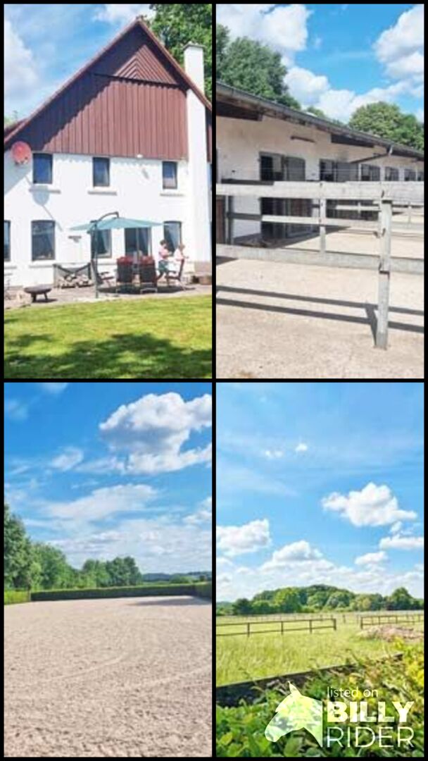 NRW, Nordrhein-Westfalen, Raum Bielefeld sehr gepflegte Reitanlage in schöner unverbaubarer Lage 🔸~ 60.000 m2 Grundstück, davon sind 2 ha Ausgleichsfläche ca. 2 km entfernt 🔸 ~ 530 m2 Wohnfläche - aufgeteilt in: 1. Wohnung: 340 m2, sehr grosse Diele, 6 Zimmer, Schlafzimmer mit Sauna, Küche, Badezimmer, Gäste-WC, Abstellraum, Gästezimmer mit Bad und eigenem Eingang 2. Studio: ca 110 m2 3. Wohnung: 70 m2 🔸Reithalle 20x40 m mit Reiterstube 🔸23 Boxen, davon 13 große Boxen mit Paddocks in der Reithalle, 7 Boxen in einem Aussenstall,1 Offenstall für 3 Pferde 🔸Aussenreitplatz 20x60 m mit Dressurboden, Rennbahn 650 m Länge, überdachte Führanlage für 6 Pferde, Wasch-und Rotlichtanlage für Pferde 🔸PV-Anlage mit 61 KW bis 2031 (Ertrag ca. 1.500 Euro/mtl.) 🔸Scheune für Lagerung Heu + Stroh, Trecker vorhanden